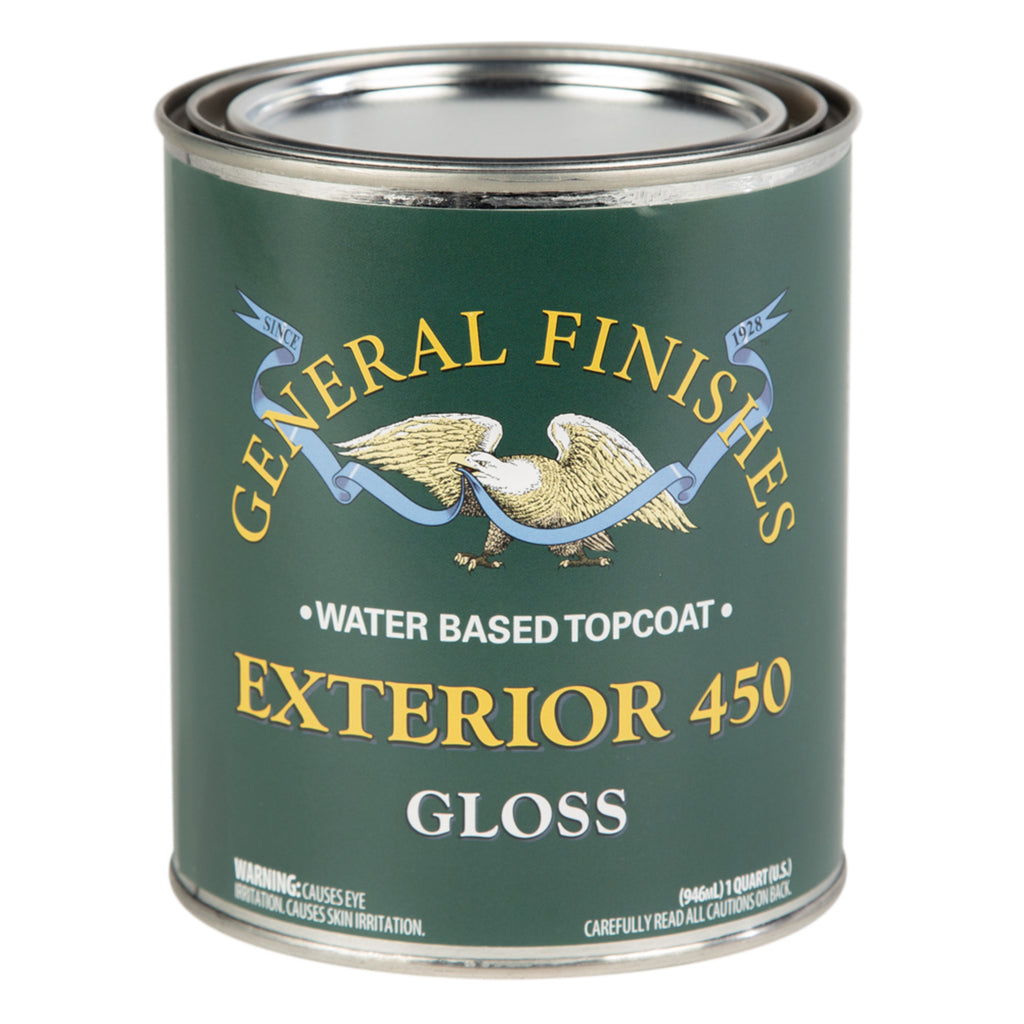 Exterior 450 Topcoat a clear-drying finish suitable for vertical exterior surfaces, such as fences, patio furniture, garage doors, entrance doors and interior windows. It is not recommended as a deck finish. Exterior 450 is fortified with UV absorbers to stabilize the finish and built-in mildewcide to retard mold and mildew growth. It performs well as a clear coat or as an optional topcoat over General Finishes Milk Paint.